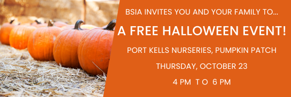 BSIA Invites you and your family to join us for a free* Halloween Event!